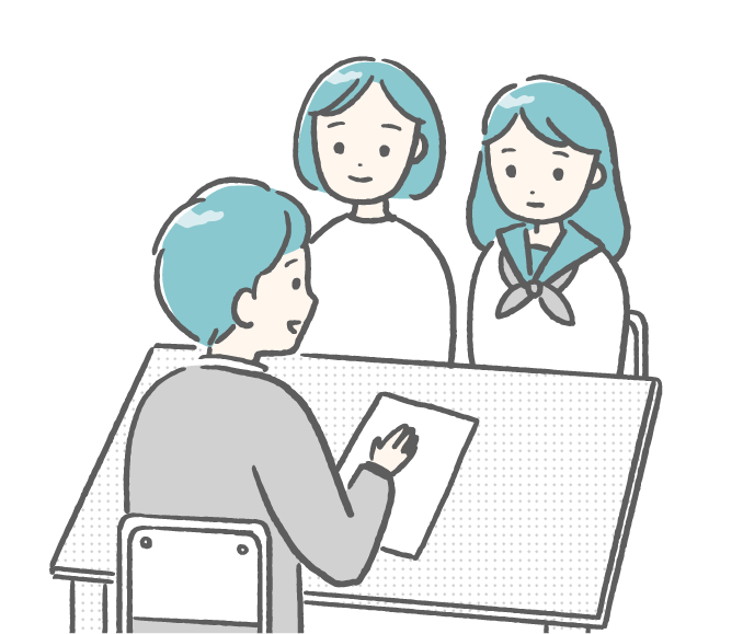 現在の学校の様子や家庭での学習習慣をお伺いし、目標に向けた学習計画を一緒に考えます。また、当塾のシステムの案内も一緒に行います。
